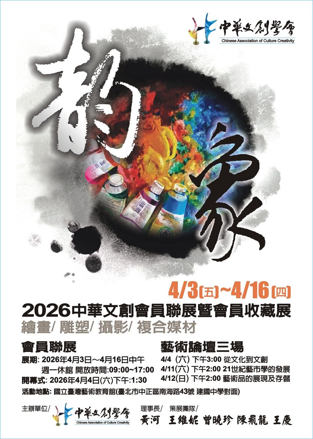 本會創立於2009年,來自藝術界繪話、雕塑、攝影及多媒材…等等多元類藝術資深及專業創作者,每年將各自創作匯聚於國家級展場展出分享社會,本次更增加收藏及邀請藝術市場專家舉辦論壇促進藝術與市場的連結。