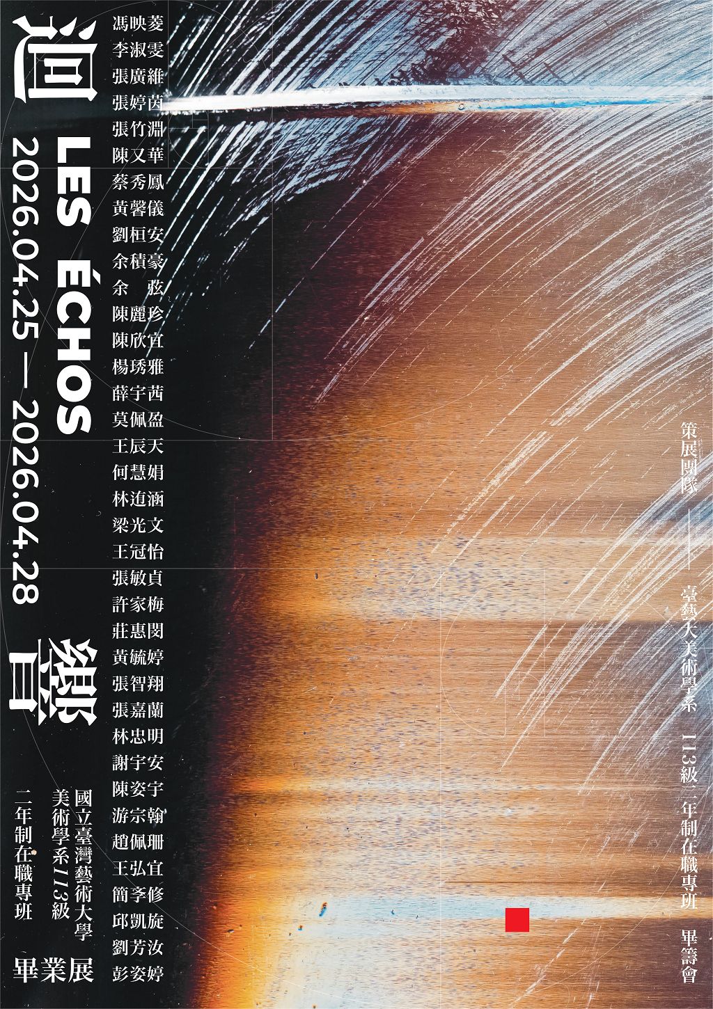 「迴響 Echoes」象徵創作者內在情感、生命經驗與外在世界之間不斷回返與共鳴的過程。每一件作品,都是一次向內探問後所產生的回應,也是一道拋向觀者的聲音,期待在觀看之中,引發不同層次的感受與對話。